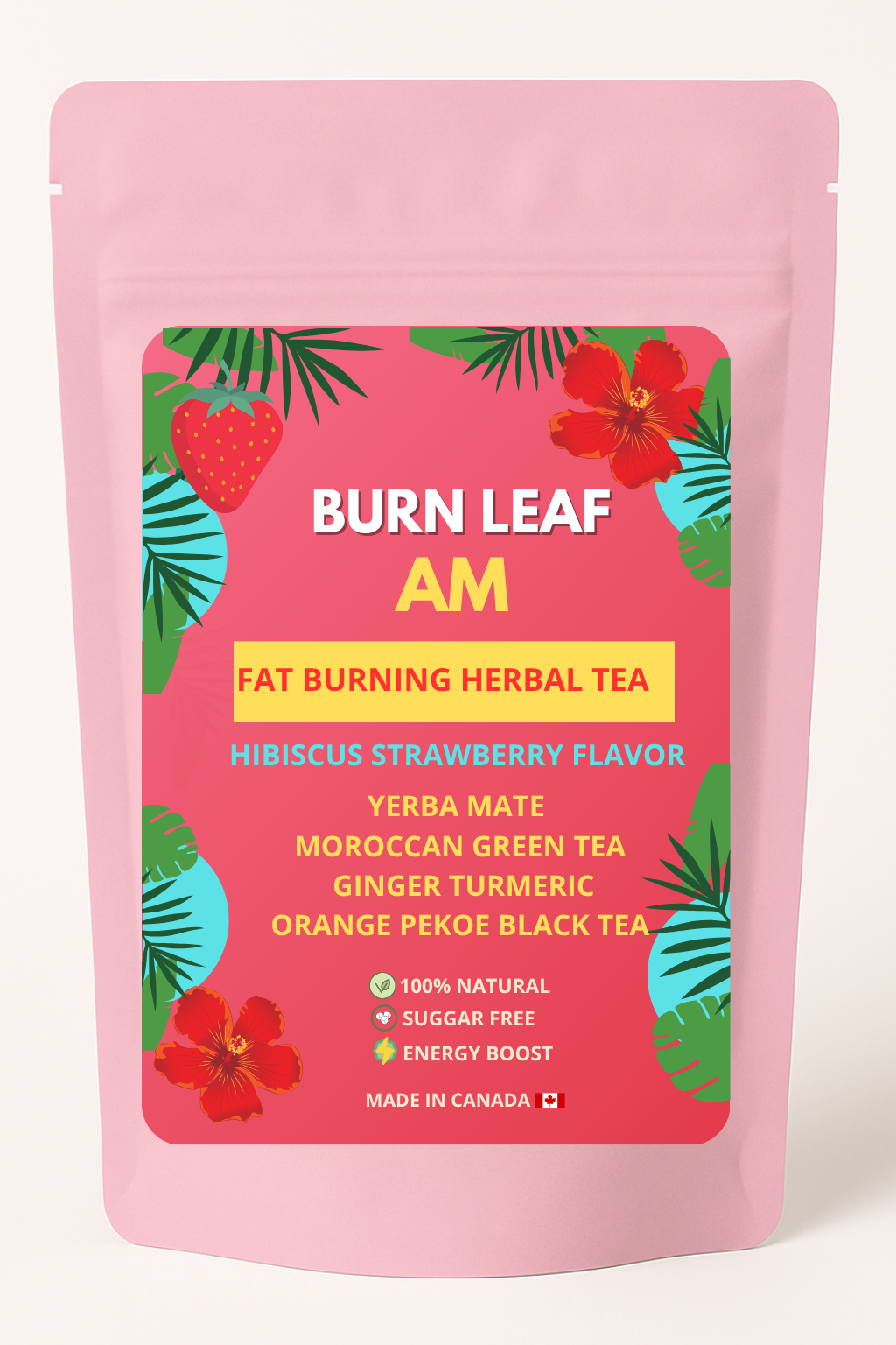 Infused with Yerba Mate, Moroccan Mint Green Tea, Jamaica Strawberry, and a subtle touch of natural spices, this refreshing morning tea awakens your body and mind while encouraging healthy habits. Whether you’re walking, working out, or simply moving through your day, Burn Leaf AM is your ritual for energy, focus, and a healthier you.